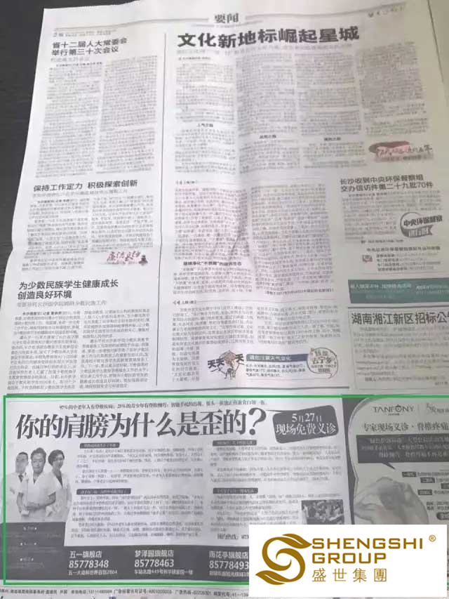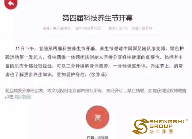 近日,盛世集團(tuán)【綠色護(hù)頸運(yùn)動(dòng)】大型公益講座,在全國(guó)各地頻頻發(fā)起;就這樣熱火朝天的綠色健康風(fēng)暴活動(dòng),引得深圳南方都市報(bào)、深圳晶報(bào)、湖南瀟湘晨報(bào)、長(zhǎng)沙晚報(bào)、楚天都市報(bào)等各大媒體爭(zhēng)相報(bào)道。